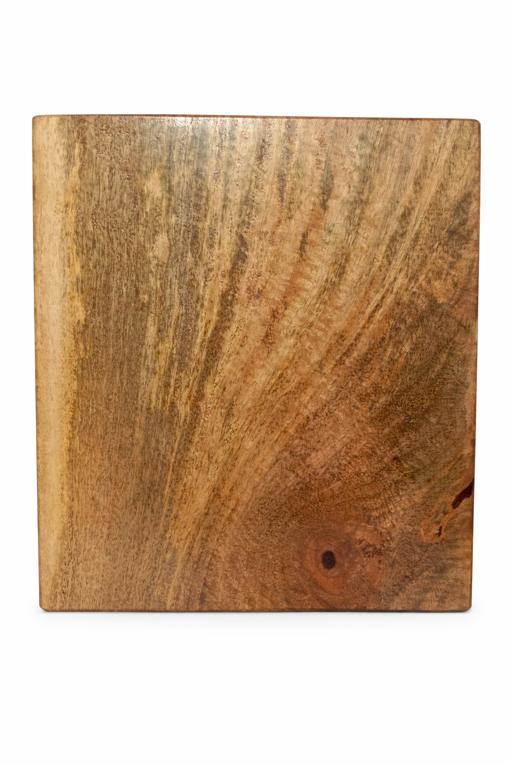 Single-piece mango wood cutting board crafted from 100% natural mango wood. Strong, durable, and beautifully finished with a rich natural grain. Perfect for cutting vegetables, fruits, meat, and serving snacks in the kitchen. Smooth surface, sturdy design, and easy to clean for everyday use.