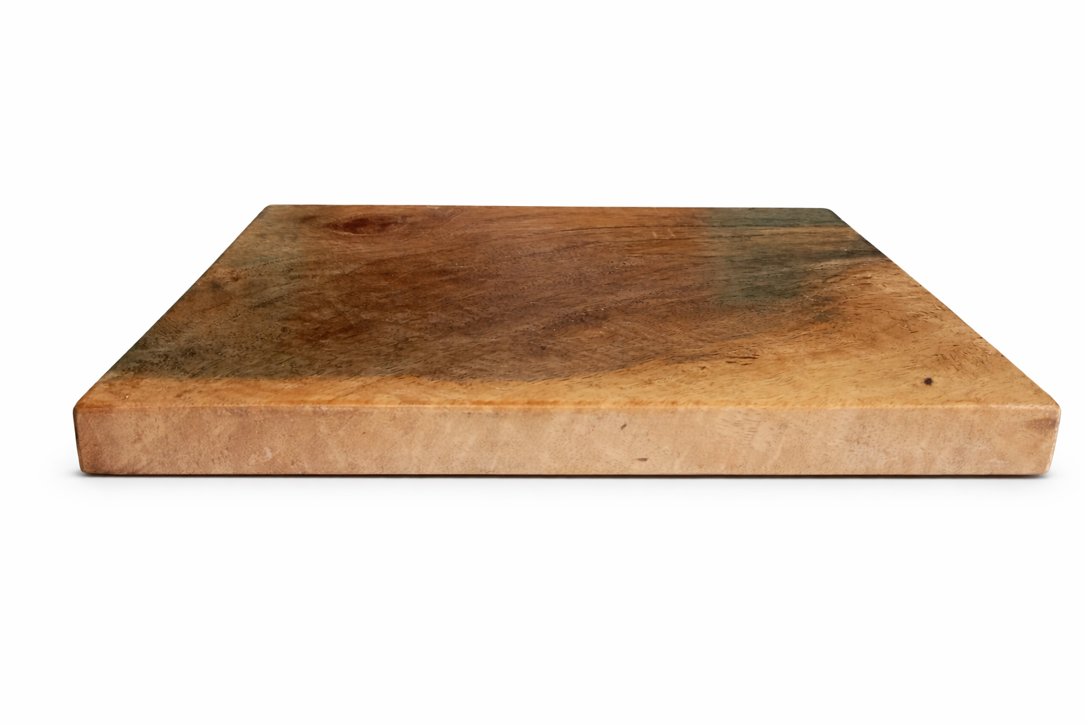 Single-piece mango wood cutting board crafted from 100% natural mango wood. Strong, durable, and beautifully finished with a rich natural grain. Perfect for cutting vegetables, fruits, meat, and serving snacks in the kitchen. Smooth surface, sturdy design, and easy to clean for everyday use.